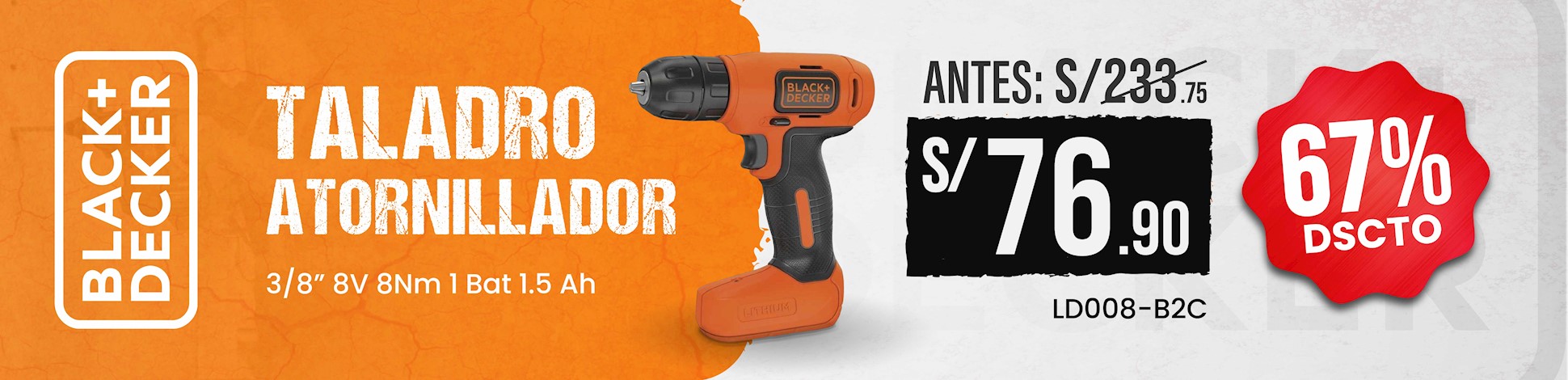 Black and Decker es una de las marcas más reconocidas en el país y en el mundo, se caracteriza por fabricar herramientas con materiales resistentes y altos estándares de calidad. Entre nuestras herramientas tenemos: taladros, amoladoras, sierras circulares, lijadoras, atornilladores, aspiradoras, hidrolavadoras, orilladoras, motoguadañas y accesorios. ¡Disfruta de tus compras online en la Tienda Oficial de Black and Decker en Juntoz.com!